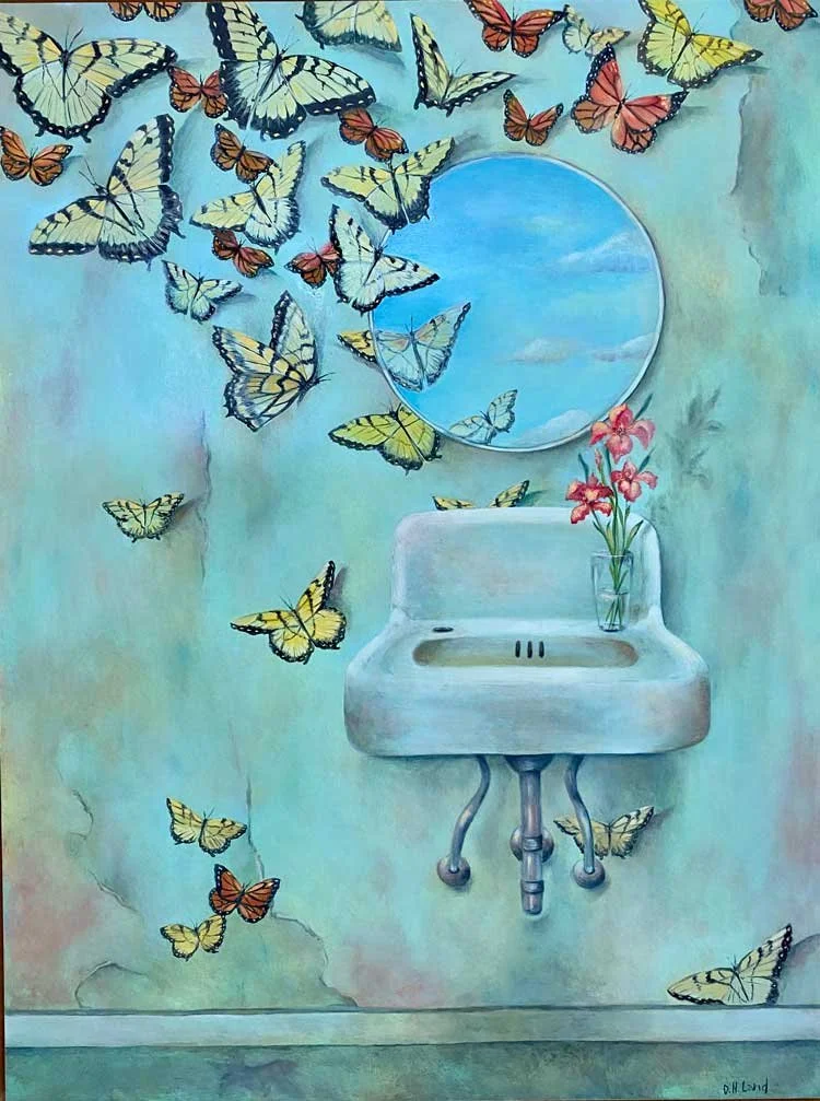 “Taking time to truly explore the versatility this medium offers has allowed me to utilize elements such as texture, depth, repetition and color to best complete visual interpretations of a universal sky contrasted with personal artifacts.”